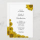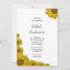 Die hübsche Einladung zur Sonnenblumen-Edge-Graduation Party zum Feiern der Leistungen Ihres Schülers. Personalisieren Sie es mit dem Namen des jüngsten Absolventen der Oberschule oder der Uni und den genauen Details Ihrer Feier. Diese niedliche und maßgeschneiderte Blumenabschlussfeier lädt mit gelben Sonnenblumenblüten ein, die die Ecken mit weißem Hintergrund schmücken. Ideal für das Mädchen, das Sonnenblumen Liebe.