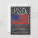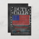 Army Stationierung DUTY CALLS Einladung mit einem Imitat Chalkboard-Look und American Fahne! Eine große Einladung, dem Soldaten gute Wünsche zu geben, bevor er oder sie auf Stationierung verlasse! Enthält einen Imitat-Chalkboard-Hintergrund und eine amerikanische Flag-Grafik.