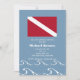 Tauchen Sie ein in ein lustiges Fest, bei dem ein Taucher mit dieser schönen Einladung geehrt wird. Der mittelblaue Hintergrund hat weiße Meereswellen und eine Tauchflagge, die "Tauchen im Wasser" signalisiert. Die Karte ist leicht anzupassen mit Ihrem Wortlaut, Schriftart, Schriftart Farbe und Auswahl von sechs Papiertypen.