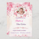 Das ist eine Taufveranstaltung für Olivia Wilson, die mit einem delikaten und eleganten Design aufwartet. Die Einladung unterstreicht ein sanftes Blumenmotiv in Rosatönen, zentriert um ein wunderschönes Foto des Babys. Er enthält wichtige Informationen über Datum, Uhrzeit, Ort und UAWG der Zeremonie. Das Gesamtbild strahlt Wärme und Spiritualität aus und ist somit perfekt für einen solchen besondere Anlass.