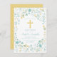 Diese hübsche Taufe (Taufe) bietet eine individuelle Einladung mit einem bunten Rahmen illustrierter pastellfarbener Blume und einem passenden Kreuz. Der Name, das Datum, der Ort und die Einzelheiten Ihrer Veranstaltung können für Ihren besonderen religiösen Anlass angepasst werden. Die Farben sind "geschlechtsneutral" - Grüntöne und Gelb. Ideal für einen Jungen und/oder ein Mädchen - sogar Zwillinge oder Vielfache.