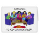 Eine Gruppe von Leuten, die an einem Tisch sitzen und über Bücher und Bücher reden. Die Worte "Einladung zu unserer Buchgruppe" begleiten das Bild.