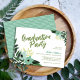 Moderne Graduierungsparty im Design mit einem kühnen tropischen Blumenrahmen und stilvollem Kalligraphie-Script-Schriftart. Personalisieren Sie das Design mit Ihren Party-Details mit Leerzeichen auf der Rückseite, um Fotos oder zusätzlichen Text hinzuzufügen. Verwenden Sie die Entwurfswerkzeuge, um alle Schriftart und Farben des Textes anzupassen, um ein einzigartiges Design zu erstellen.