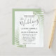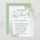Ihre Gäste werden dieses elegante, raffinierte tropische Design Liebe geben. Das große tropische Blattwerk in Aquarellfarben auf einem weichen, grünen Aquarell. Moderne Kalligraphie ist Set in einem bogenförmigen, transparenten Overlay. Einfach zu bearbeiten mit Ihren einzigartigen Details.