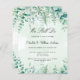 Ein grüner, wasserfarbener Hintergrund mit Eukalyptusgrün, Waldfarnen. Personalisieren und Ihren Namen und Ihre Zeremonie Details. Zurück: grüner Hintergrund mit Eukalyptus und Waldfarnen
