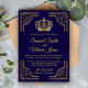 Erleben Sie Ihre Gäste mit dieser königlichen Hochzeitseinladung mit einer verzierten goldenen Grenze und einer schönen Krone vor blauem Hintergrund. Fügen Sie einfach Ihre Veranstaltungsdetails zu dieser einfach zu bedienenden Vorlage hinzu, um sie zu einer einmaligen Einladung zu machen. Dreh die Karte um ein schönes Muster auf der Kartenrückseite zu zeigen. Diese Einladung ist vollständig anpassbar. Alle Texte sind editierbar und die Hintergrundfarbe lässt sich leicht nach Ihren Wünschen ändern.