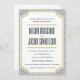Diese geschmackvolle Einladung weist ein schönes Diamantenmuster auf, das an die Deko-Epoche erinnert. Schwarze, goldene und fette Typografie Set für ein glamouröses Event! Die Matching -the-Date- und Response-Karte ist ebenfalls verfügbar. Fügen Sie aus unserer umfangreichen Portalkollektion eine Umwicklung-Hochzeits-Briefmarke hinzu, die perfekt auf Ihre Einladung abgestimmt ist. Umschläge, Briefumschläge und Pocketfold®-Gehäuse sind als Add-on (rechts) über zazzle.com erhältlich