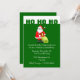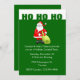 Feierlich grüne Weihnachtsfeier, mit HO HO HO in grün, mit einer weißen Band, auf der Spitze der Einladung. Grafiken eines Cartoon Santa schmückt unter dem HO HO HO. Der weiße Text ist individuell anpassbar und steht Ihnen für Ihre Feier zur Verfügung.