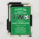 Fußball Zweite Geburtstagsparty Einladungen! Feiern Sie Ihren kleinen Fußballspieler mit diesem niedlichen Fußball-Geburtstagsdesign, das mit einem Fußball-Hintergrund mit "TWO" erstellt wurde, der anstelle des "O" einen Fußball hat. Fügen Sie Ihrem Kind eine besondere Touch mit diesen sportlichen Geburtstagsfeierlichkeiten!