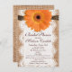 Hier ist eine einzigartige rustikale Brautdusche mit bedrucktem Burlap Jute und Spitzen-Design mit einem schönen Country Orangensaft und bedrucktem Garnbogen oben. Die Einbruch-, Spitzen-, Dissy- und Zwirn sind nur bedruckte Designs. Das ist eine Einladung. Auch das rustikale Country Burlap Printdesign ist auf der Rückseite. Diese sind perfekt für Brautpaare, die eine rustikale Hochzeit oder eine Scheunenhochzeit haben werden.