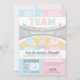 Sport Thema Geschlecht offenbart Einladungskarte Design mit Fußball-Helme und Arena. Rosa und blaue Babydusche.