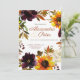 Schöne bordeauxfarbene und goldene Sonnenblumen-Einladungen. Ideal für einen Sommer oder eine Hochzeit im Herbst! Passen Sie die Vorder- und Rückseite mit allen notwendigen Details an, um Ihre Freunde und Familie zu Ihrem besonderen Tag einzuladen.