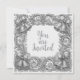 Silber gefärbte Hochzeitseinladung mit Glocken und Ribbons. Einladung zum Hochzeitsfeiern mit einer Grenze von silbernen Glocken und Ribbons als attraktiver Rahmen.