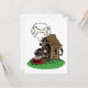 Wenn du Hunde magst, wirst du das Design eines Hundes in seinem Hundehaus, der von einem Knochen träumt, Liebe geben. Der Hund ist halb draußen im Hundehaus mit einer Schüssel Futter vor ihm. Allerdings träumt der Hund von anderen Dingen und hat einen Knochen in einer Traumblase über ihm. Dieses Hundedesign sieht großartig aus bei diesen Einladungen