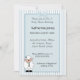 Niedliche Lamm-Einladung mit blauem Hintergrund und blauem Bogen. Lamm hat einen blauen Schnuller um den Hals und eine blaue Blume im Haar. Verwenden Sie unsere einfache Vorlage, um mit Ihren Informationen anpassen.