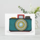 Kameras aus der alten Zeit hatten einen großartigen Blick auf sie und dieses Design ist ein Schwenk zurück zu damals einer Retro-Kamera. Der Körper der Kamera ist am meisten; y grün mit einem Sucher oben und der Auslöseknopf rechts. Dieses Retro-Design der Kamera sieht gut aus bei diesen Einladungen