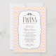 Zwei Babyduschen mit Zickzack, hellrosa und orangefarbenem Streifen. Passen Sie die Formulierung mit Ihren Duschinformationen an. Sehen Sie sich vor, wie die fertige Einladung auf dem Bildschirm aussehen wird, bevor Sie bestellen.