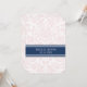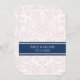 Einladende Vorlagenkarten für Hochzeit in elegantem und zeitgenössischem dunkelmarineblau, hellpastellfarbenem Rosa und weißem klassischem und chic floralen Damask Vintages Muster. Passen Sie diese Einladungen mit Ihren Hochzeitsdetails an. Erhältlich in passenden Produkten für alle Ihre Hochzeitsbedürfnisse.