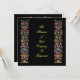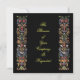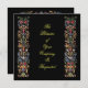 Elegante Einladungen mit Vintager Kunst aus einem mittelalterlichen illuminierten Manuskript mit bunten Blume und Blätter auf schwarzem Hintergrund. Anpassen Sie es, um Schriftart zu ändern, Ihren Namen und Textstil vor und zurück hinzuzufügen.