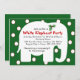 Laden Sie Ihre Mitarbeiter oder Freunde mit diesen bunten Einladungen zu Ihrem nächsten weißen Elefanten-Party ein. Der große weiße Elefant ist auf einem grünen Hintergrund mit weißen Polka-Punkten in rotem Gewand.