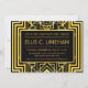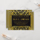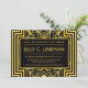 Die Einladungen des Junggeselinnen-Abschieds sind mit einem komplizierten geometrischen Rahmen, geometrischen Mustern, einer Schwarz- und Goldpalette und anderen stilistischen Details ausgestattet, die alle durch Art Deco und die rotierenden Zwanziger inspiriert werden. Sie können die Textfelder des Beispiels nach Ihren Wünschen anpassen.