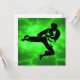 Karate-Party Einladungen zeichnen sich durch ein Blitzdesign aus. Dies ist die männliche Version mit grünem Hintergrund. Wir haben auch andere Farben und ein weibliches Design.