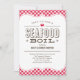 Einladungen zu Meeresfrüchten mit Krabbe und roten Tischdecken. Passen Sie den Wortlaut Ihrer Einladung an Ihre Bedürfnisse an.