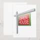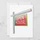Dieses Design ist von einem offenen Hausschild. So wie du es hättest, wenn du dein Haus verkaufst. Das offene Hausschild ist rot mit weißem Schriftzeichen und ist an einem Beitrag befestigt. Dieses Design des offenen Hauszeichens sieht gut aus für diese Einladungen