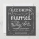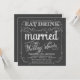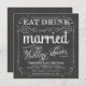 Elegante Vintage Chalkboard Polterabend Einladungen — Essen, trinken und verheiratet sein. Wirble, geschmeidige Rollen und extravagante rustikale Rahmen auf der Schiefergrauen Tafel. Fügen Sie in dieser leicht zu bedienenden Vorlage den Namen der Braut und das Party hinzu. Vintage Kalkkalligraphie und Schriftzeichen - die Schriftart-Stile ändern, um Ihr formales oder semiformales Retro-Hochzeitstil widerzuspiegeln. Der Square Chalk Board Einladungsstil ist ideal für moderne Hochzeiten mit einer lustigen Touch von raffiniertem Charme für Braut und Bräutigam.NACHRICHT: Dieses Produktdesign ist nur für Quadrat-Karten Set-Up, was extra Porto erfordert.