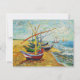 Einladungen zu Van Gogh Fischerbooten. Öl auf der Leinwand 1888. Das ist eines der schönsten Gemälde von Van Gogh an der Marina. Die Arbeit umfasst vier Fischerboote, die am Strand sitzen, mit ihren Segeln. Die Fischerboote sind rot, grün und blau. Ein hübsches Geschenk für die Liebhaber von Van Gogh, Segelbootgemälden, Post-Impressionismus und französischer Kunst.