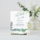 Abenteuer erwartet Einladungen. Das Design besticht durch eine Bergszene mit Bäumen und einer Aquarellstruktur. Weitere Party-Vorräte erhalten Sie im Metro-Events Zazzle Shop und unter Metro-Event.com.