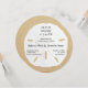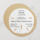 Rund Sand Dollar Hochzeitsaufenthalte am Strand. Realistisches Muschel-Bild mit schwarzem Kalligraphie-Schriftart, auf einem sandfarbenen Hintergrund. Informeller Text hat das Datum an der Spitze mit den Namen der Braut und Bräutigam in der Mitte. Eine Empfang-Adresse kann dabei angegeben werden. Ebenfalls die Option Square paper.