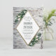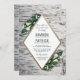 Birch Tree Woodland Engagement Party Einladungen - verfügt über einen rustikalen Birkenbaum-Hintergrund mit Blumenelementen aus Farn, Calla lily Single Blume, Babyatmen, Blätter und mehr. Das Textfeld ist ein elegantes Dreieck mit einem vergoldeten Rahmen aus Imitaten.