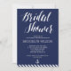 Einladungen zur Brautdusche mit blauen Streifen, weißem Anker und auf marineblau-blauem Untergrund gedrucktem, individuellem, weißem Text