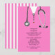 Die Creative Medical School Graduation Party lädt mit rosafarbenen Krankenhauskeuchen und Stethoskop ein. Editieren Sie den Text, um eine einmalige Ankündigung der Party Einladung oder des Doktorgrades zu erstellen.
