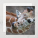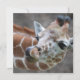 Niedliche Giraffe mit der Zunge, die seine Nase leckt.