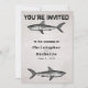 Vintager Hai Strand Hochzeitseinladungen in Schwarz, Weiß und Grau.