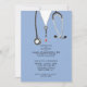 Kreatives Design der Krankenschwester mit blauen Krankenhausdüsen und einem Stethoskop. Bearbeiten Sie den Text, um eine einzigartige Einladung oder Ankündigung für die Abiturfeier zu erstellen.