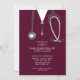 Der kreative Abschluss der Pflegeschule lädt mit einem Stethoskop und einem Riesenkrankenhaus ein. Bearbeiten Sie den Text, um eine Einladung oder Ankündigung für eine Diplom-Abitur zu erstellen.