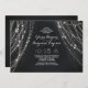 Chalkboard chic Probe Dinner Einladung mit einer Reihe von Lichtern Hintergrund.
