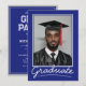 Feiern Sie den Meilenstein Ihres Absolventen mit dieser eleganten, anpassbaren Einladungskarte für Ihren Abschluss. Dieses Design mit einem klassischen marineblauen und silbernen Schulthema und Platz für Foto, Namen, Schule und Veranstaltungsdetails des Absolventen bietet einen zeitlosen Weg, Lieblinge zum großen Tag einzuladen. Ideal für Gymnasiasten oder Uni-Abschlüsse! 𝐍 𝐎 𝐄! Die Farben des Hintergrunds und der Elemente können geändert werden. Stellen Sie einfach sicher, dass Sie sie sowohl auf der Vorder- als auch auf der Rückseite anpassen.