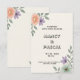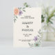 Eine weiche, cremig graue Hochzeitskarte mit zarten, handgezeichnet Blumengrafiken in blassfarbenen Pfirsich-, Lavendel- und Minztönen, die ein Gefühl von beruhigender Romantik ausstrahlen. Die Blume sind in einem skurrilen, Bio Muster verstreut, mit subtiler Textur und sanfter Schattierung, die dem Design ein Gefühl von Tiefe und Dimensionalität verleiht. Das ästhetische Ganze ist schlicht und elegant, perfekt, um die Freude und Intimität des besonderen Tages zu vermitteln. Das Layout der Einladung ist sauber und einfach, mit viel weißem Raum, um ein Gefühl von Atmungsaktivität und Eleganz zu schaffen, sodass die wunderschönen Blumenbilder die Bühne des Zentrums nehmen können. Die Struktur der Karte ist glatt, mit einem subtilen Glanz, der das Licht auffängt und ihm ein luxuriöses Ambiente verleiht.