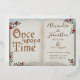 Dieser magische und bezaubernde rett des rett für die Hochzeitseinladung enthält ein Märchen Geschichtenbuch Thema. Der Hintergrund ist ein Vintages, offenes Buch mit Glitzer Akzenten rund um die Grenze. Der Märchenbegriff "Once upon a Time" wird auf der verlassen Seite in einem skurrilen, echten Schriftart aus Goldfolie gedruckt. Die Namen des neu verlobten Ehepaares werden rechts gedruckt, zusammen mit dem Hochzeitstermin und dem Zusatztext, den Sie selbst personalisieren können. In den Ecken des Buches werden verzauberte rote Rosen und Weinberge platziert.