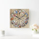 Erstellen Sie Ihre eigene Multi-Foto-Uhr, um Ihre Geschichte zu erzählen - die Mitte der Uhr wird mit "Once upon a time" in handgeschriebener Typografie geschrieben. Verwenden Sie die Bildvorlage, um 12 Ihrer bevorzugten Fotos hinzuzufügen, die in herzförmigen Rahmen angezeigt werden. Das Design verwendet porträtierte vertikale Fotos für alle Zahlen außer 3 und 9, die im Querformat horizontal angeordnet sind. Die Uhr hat einfache Zahlen mit einem Kieferneffekt-Hintergrund.