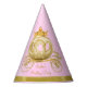 Prinzessin Geburtstagshats mit hübscher königlicher Goldprinzessin-Kutsche auf hübschem rosa und goldfarbenem Hintergrund. Sie können mit dem von Ihnen gewünschten Text in der Schriftart-Stil und Farbe, die Sie bevorzugen, personalisieren.