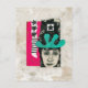 Eine Collage, bestehend aus einem skurrilen Charakter mit einem schwarz-weiß gezeichneten Bleistift und einem türkisfarbenen kronenförmigen Objekt über ihrem Kopf. Helle rosa und schwarze Elemente mit blumigen und geometrischen Mustern flankieren das mittlere Gesichtsbild, das Set vor einem konturierten beigen Hintergrund.