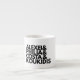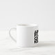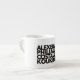 Eine Espresso-Tasse, entworfen mit den Namen der Figuren aus Bestseller Roman "ONCE WE HERE" von Christopher Cosmos.