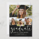 Eine moderne Abschluss-Einladung mit dem Wort "Graduierte" auf der Vorderseite in stilvoller Schrift-Kalligrafie, plus 4 Ihrer Lieblings-Senior-Fotos. Fügen Sie Ihre persönlichen Festdetails mit einem zusätzlichen Bild auf den Rücken. Das ist die schlichte schwarze und Elfenbeinversion.