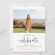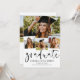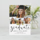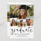 In modern graduation featuring the word "graduate" on the front in stylish script calligraphy plus 4 of your favorite senior fotos. Add your own personal celebration details to the back along with an additional picture. This is the simple minimalist black and white version.