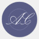 Klassische formale Kalligraphie mit eingekreist Skript Monogramm schlichte elegante Marineblau-Weiß-Umschlag Aufkleber oder bevorzugen Verpackung Hochzeitsaufkleber.
